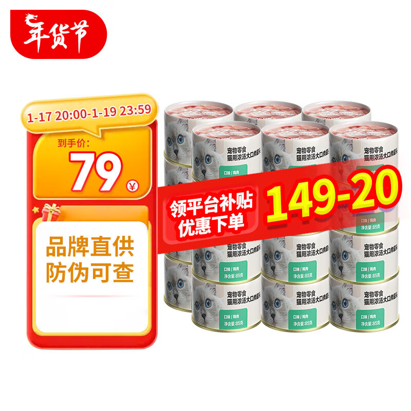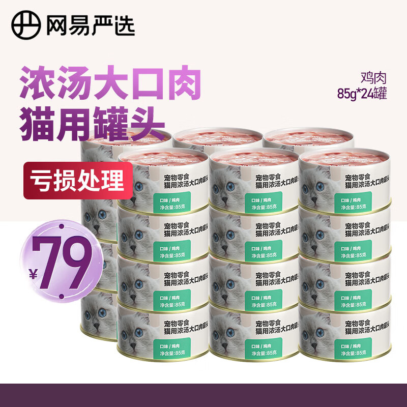 网易严选宠物猫罐头猫粮猫湿粮宠物零食猫用浓汤大口肉罐头 鸡肉 85g*24罐