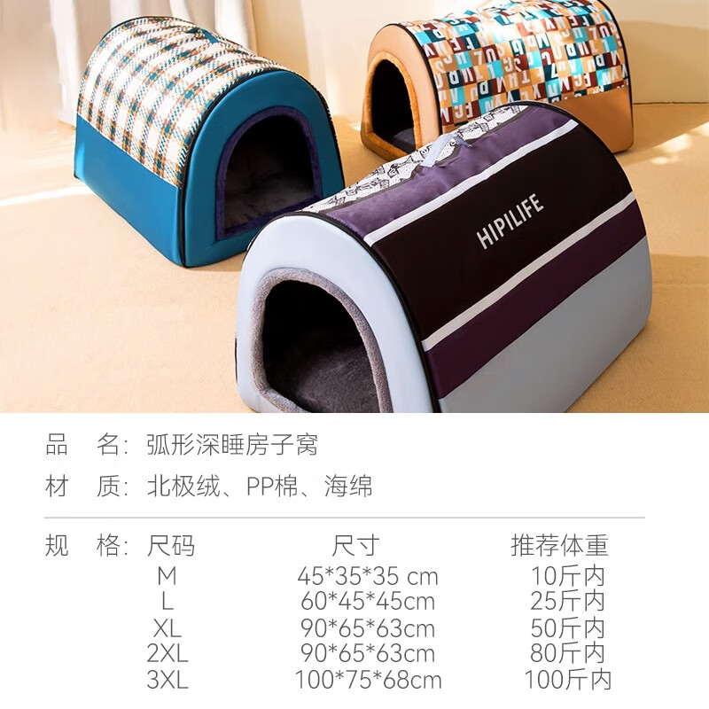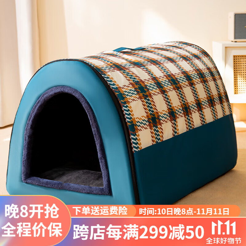嬉皮狗狗窝冬季保暖房子可拆洗狗狗屋冬天封闭式泰迪柯基四季通用宠物床 格调蓝 M(建议体重10斤内)