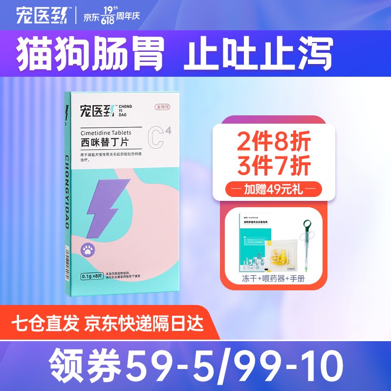【七仓直发】宠医到 宠物止吐药肠胃药狗狗猫咪止痛止泻西咪替丁片 呕吐腹泻炎症吐黄水白沫胃酸含益生菌 西咪替丁片