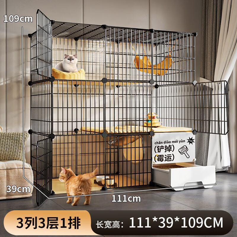 蔻丝猫笼子超大号家用室内猫咪别墅带厕所一体幼猫猫舍屋猫窝宠物猫笼 带猫砂盆一体【大3层 111*39*109 至尊款【猫砂盆带铲 碗 瞄舍款】