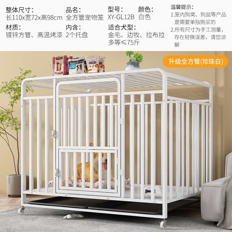 新越昌晖狗笼狗笼子大型犬中型犬小型犬加粗方管笼子围栏泰迪金毛拉布拉多哈士奇宠物笼子长110*宽72*高98cm