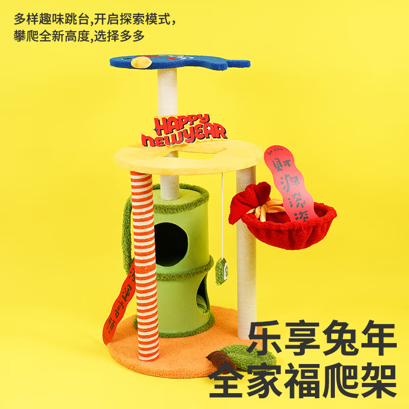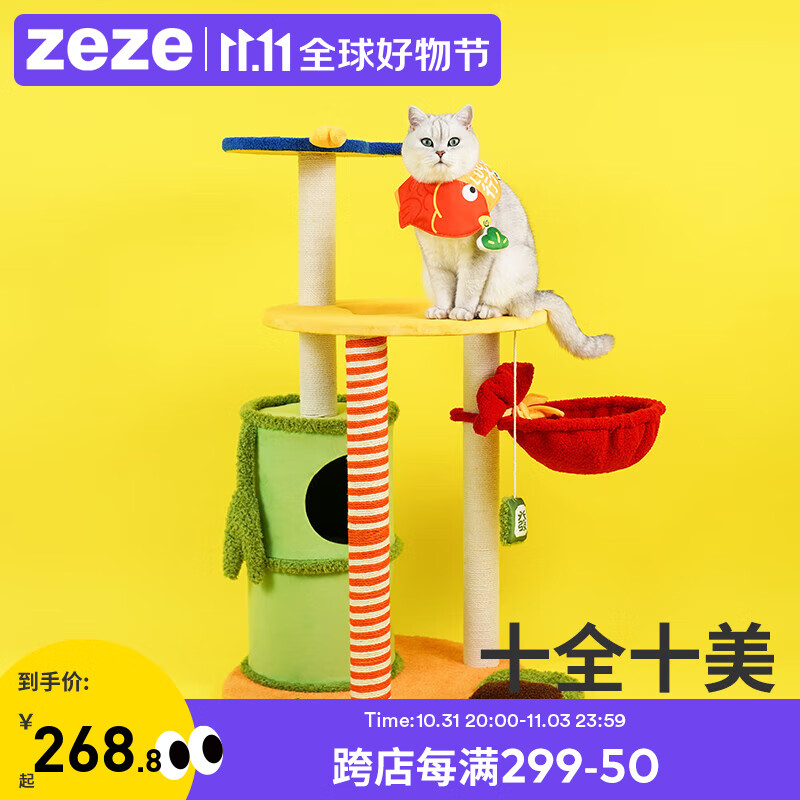zeze全家福猫爬架带窝磨爪猫抓架双窝多层猫咪爬架猫架 十全十美爬架 60*60*107cm