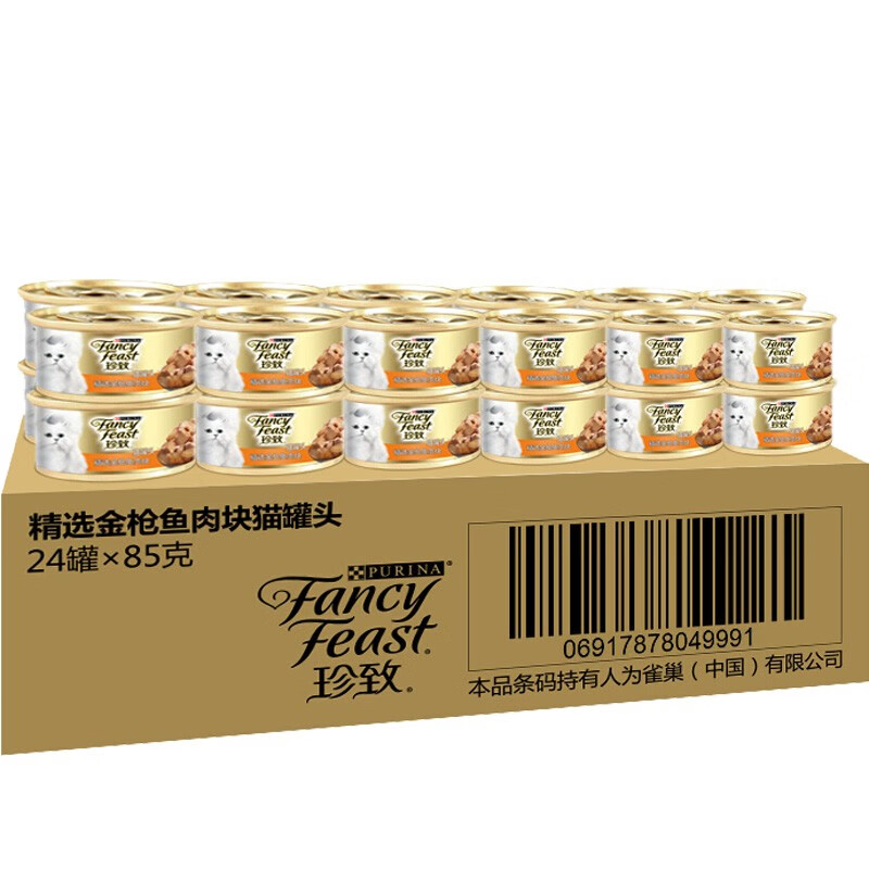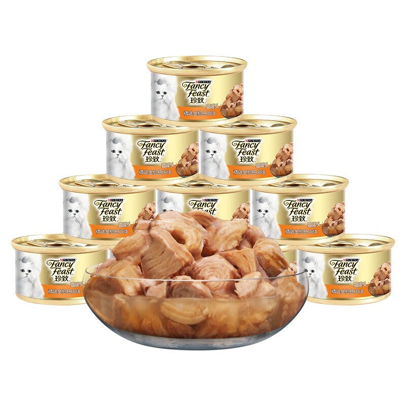 珍致猫罐头24白金罐进口白肉湿猫粮宠物猫零食罐头 金枪鱼肉块24罐【浓汤型】