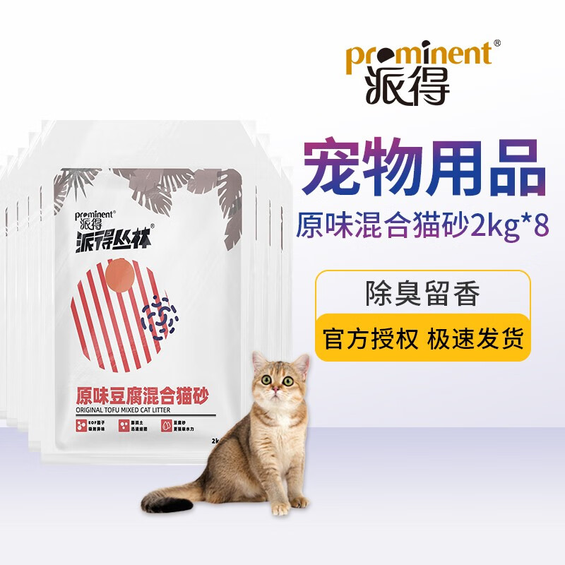 派得 豆腐猫砂除臭无尘猫沙易洁团可冲厕所 原味豆腐混合猫砂2kg*8袋