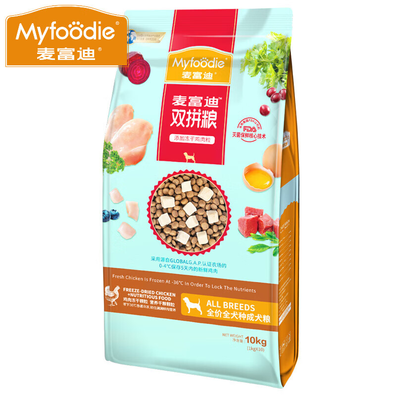 麦富迪(Myfoodie)麦富迪冻干狗粮10kg泰迪金毛边牧哈士奇通用型 冻干双拼粮通用成犬粮10kg 10kg