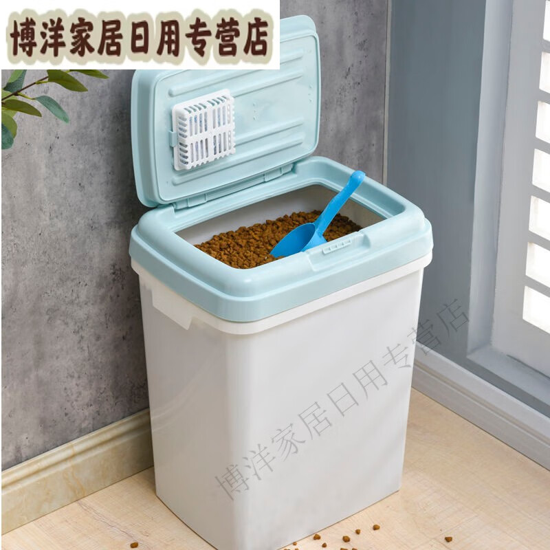 帕沐阁宠物储粮桶狗粮猫粮桶密封防潮加大号塑料大容量35L15kg20kg用 新款蓝色盖白色桶 中号约装15kg