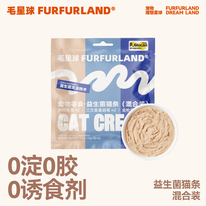 FurFurLand毛星球益生菌猫条成幼猫营养增肥猫咪零食湿粮包 鸡肉三文鱼金枪鱼10g*6*5