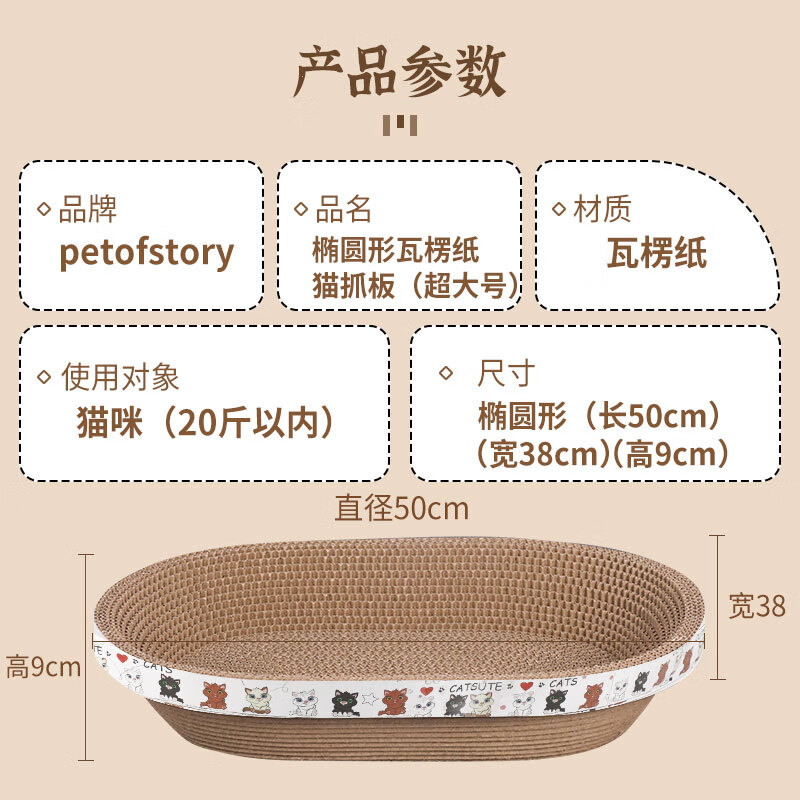 petofstory 肥猫专用 超大号猫抓板大椭圆形 特大号猫抓板窝 猫磨爪碗形猫玩具瓦楞纸猫咪用品