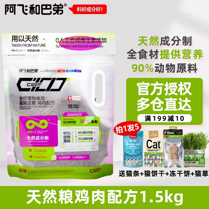 阿飞和巴弟C100猫粮 幼猫成猫天然成分猫用主粮 鸡肉配方1.5kg