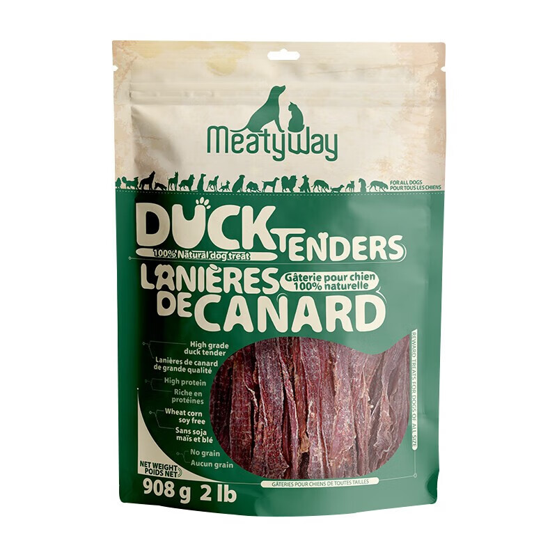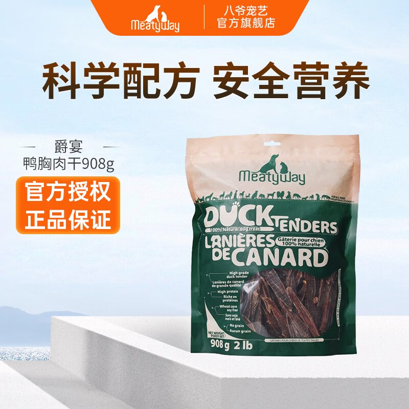 爵宴(MEATY WAY)佩蒂狗零食鸭胸肉缠地瓜干宠物零食狗干粮鸭肉干训犬奖励磨牙 鸭胸肉干908g/袋