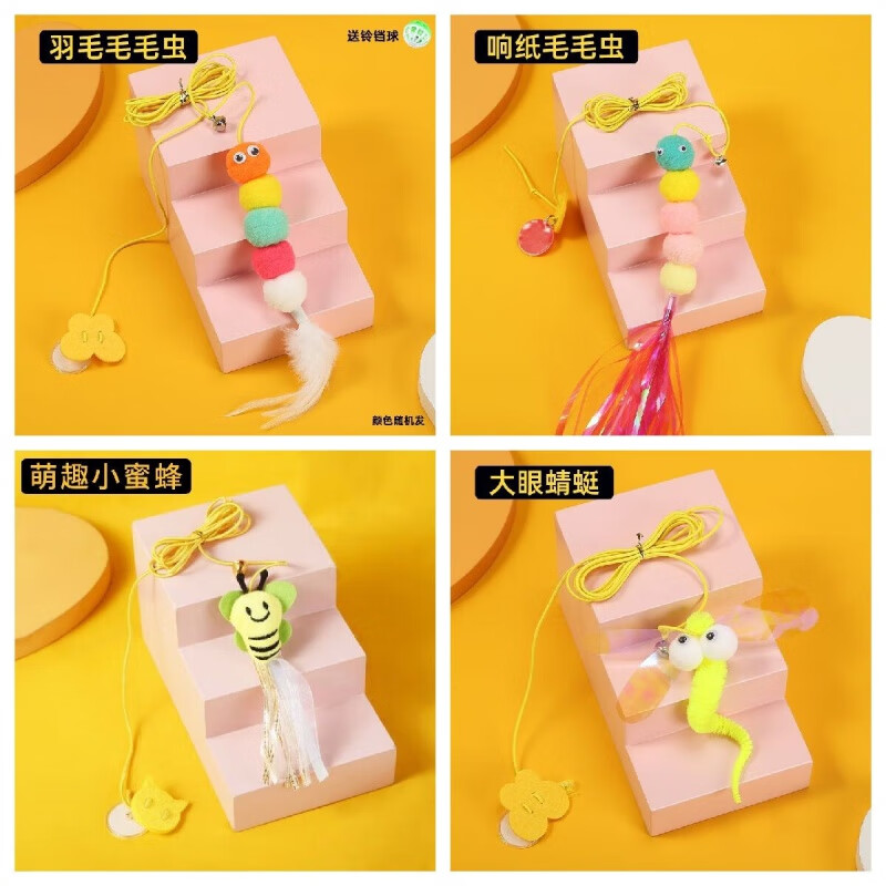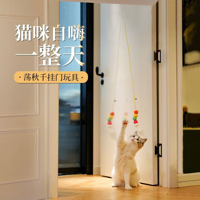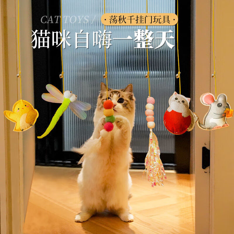 猫玩具自嗨解闷荡秋千挂门悬挂弹力羽毛逗猫棒铃铛小老鼠猫咪用品 逗懒猫四件套