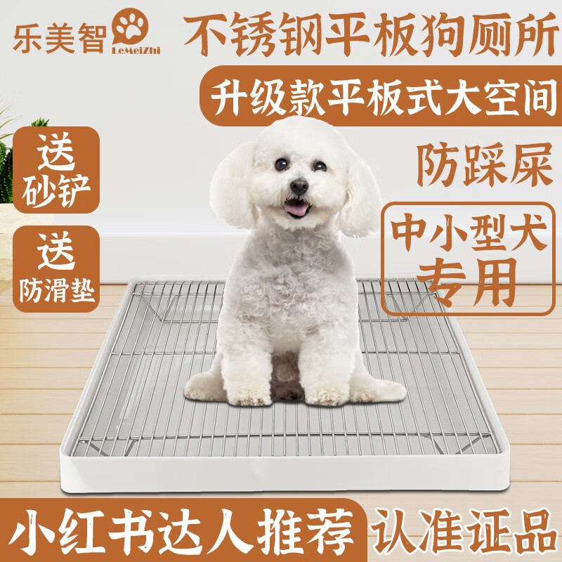 Gray egg 宠物狗狗不锈钢狗厕所幼小型犬狗砂盆防踩屎狗屎盆尿盆漏屎平板式宠物便盆 白色 小号35.5*28*5 间距1.5厘米