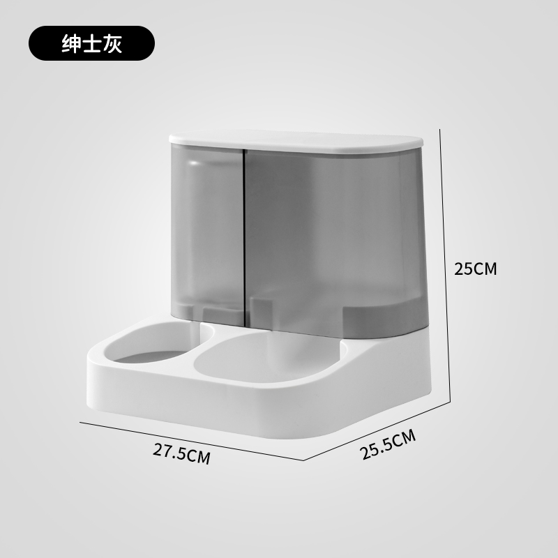 怡亲 宠物自动喂食器饮水机猫碗狗盆 猫咪投食器储粮桶 免插电无线食盆饮水器一体 绅士灰【喂食喂水一体机】-2.8L粮 1L水