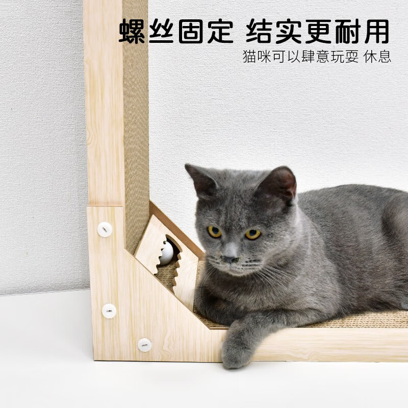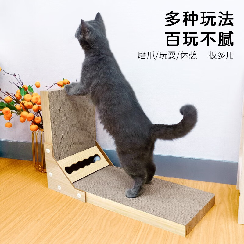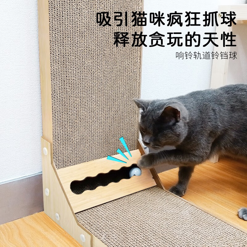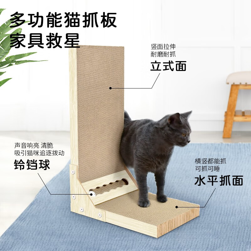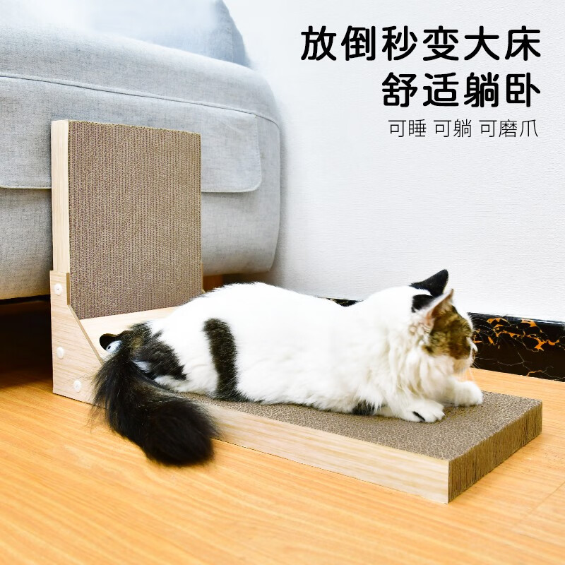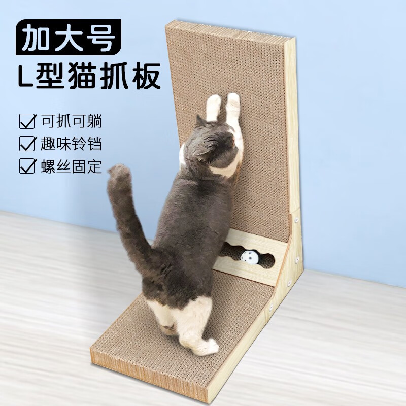 得酷 猫抓板 沙发床贵妃椅瓦楞纸猫窝磨爪器耐磨猫咪玩具用品 L型铃铛款 60*40*26CM 建议12斤内猫
