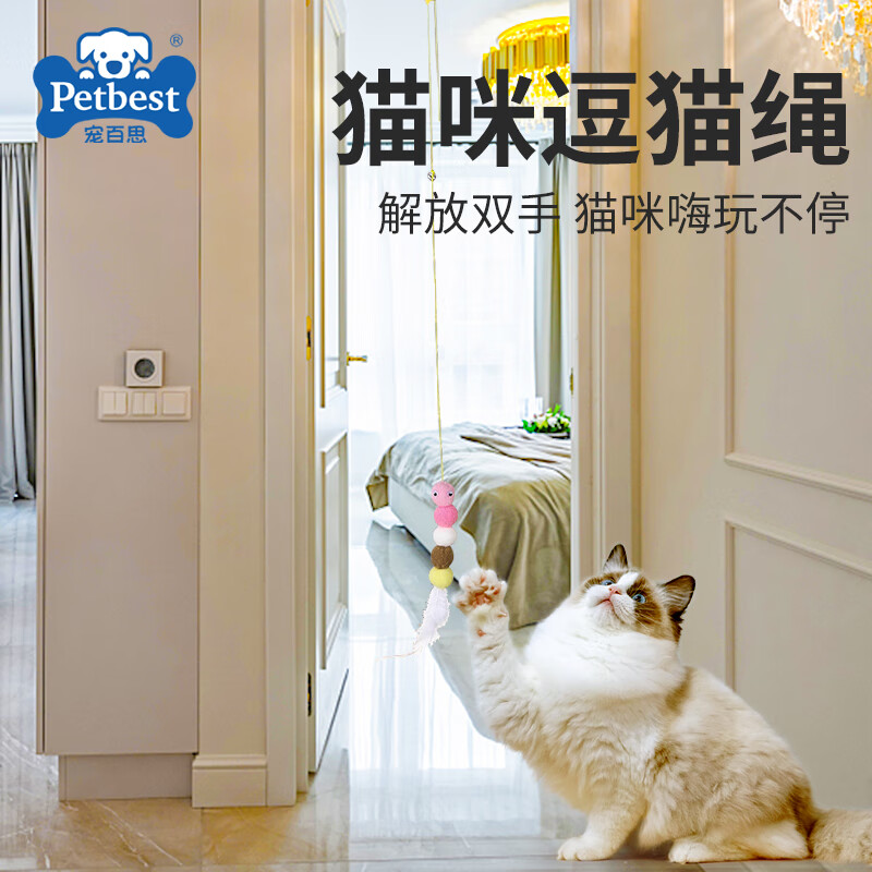 猫玩具解闷荡秋千挂门悬挂弹力羽毛逗猫棒铃铛小老鼠猫咪 毛毡蝴蝶