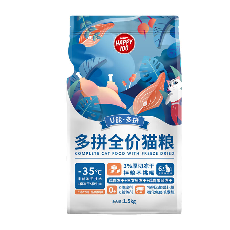 顽皮(Wanpy)多拼冻干猫粮成猫幼猫全价鲜肉粮营养专用粮蓝猫英短美短 【美味三文】三文冻干猫粮1.5k.g 0k.g (以选项规格为准)