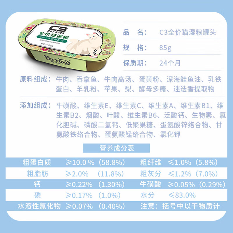 帕缇朵(PEPTIDO)c3猫罐头主食猫罐头全价猫湿粮成幼猫营养食品牛肉鸡鱼肉浓汤补水 牛肉 吞拿鱼85g*24罐