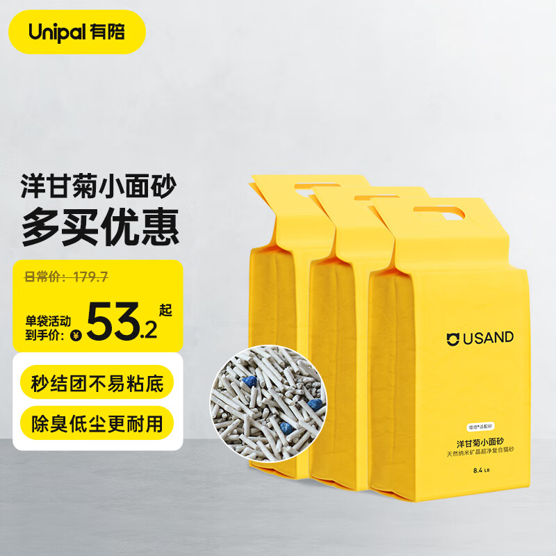 有陪智能猫砂盆专用洋甘菊混合豆腐小面砂小颗粒快速结团3袋装