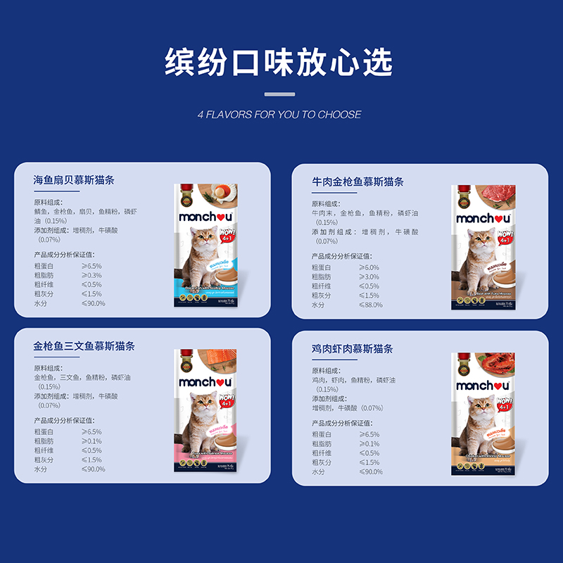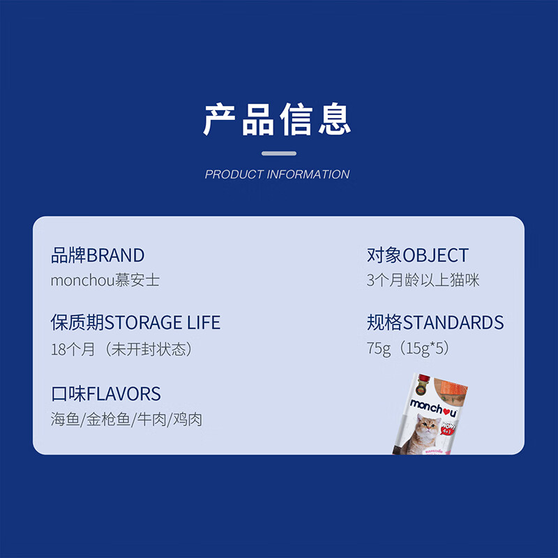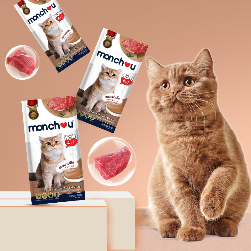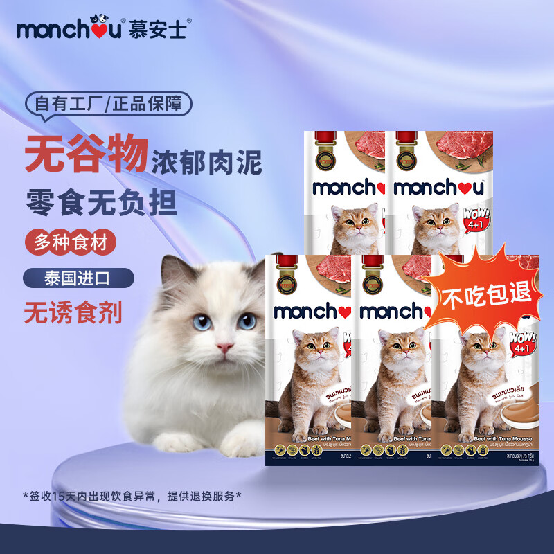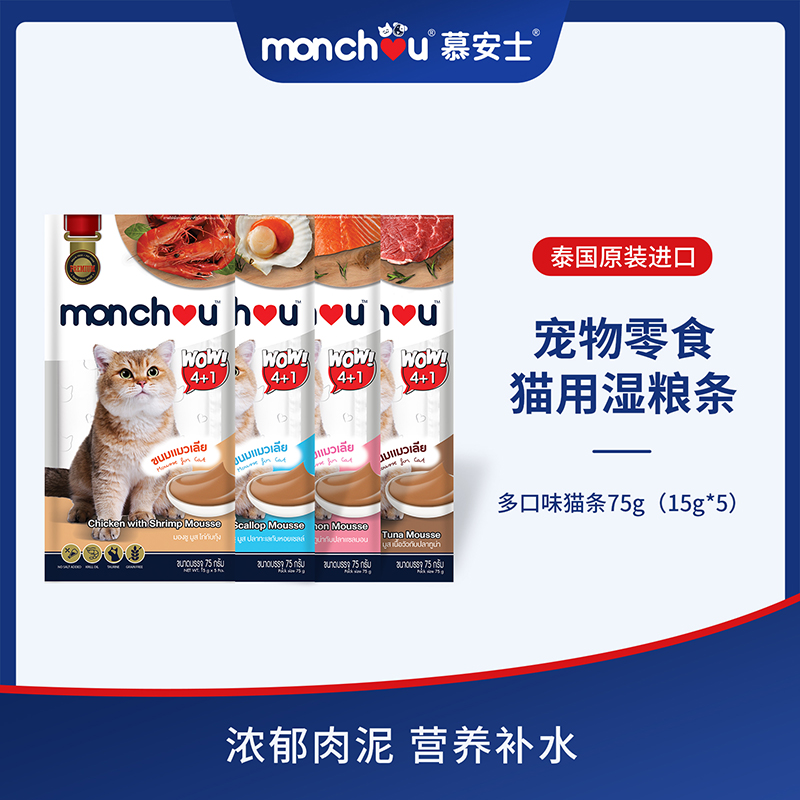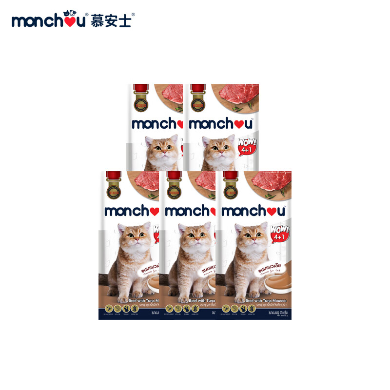 慕安士(monchou)泰国进口 猫零食成猫幼猫湿粮 牛肉金枪鱼猫条15g*5
