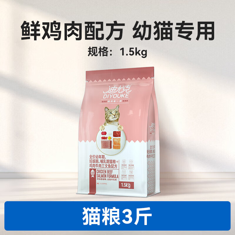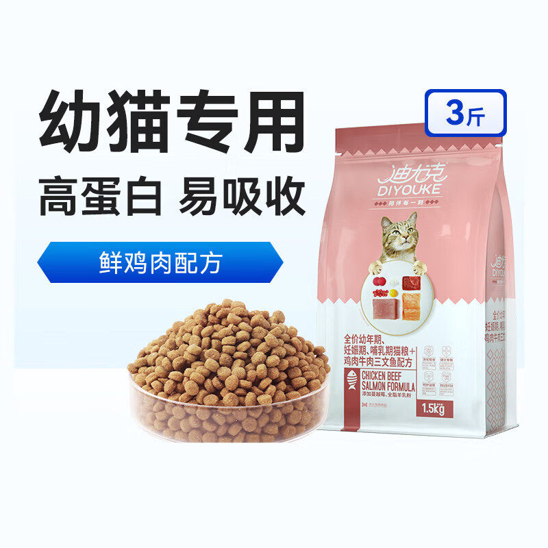 迪尤克猫粮营养1.5kg3斤装1-12月英短美短幼猫专用发腮通用型猫粮 鸡肉牛肉三文鱼配方 1.5kg