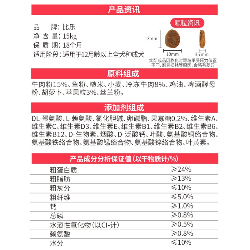 比乐狗粮 幼犬成犬15kg30斤守护者全犬种大中小犬通用型泰迪金毛狗干粮金毛泰迪拉不拉多萨摩阿拉斯加 牛肉 果蔬 益生元全价成犬粮15kg