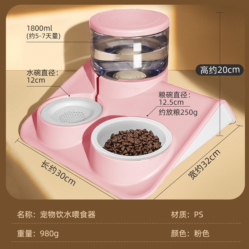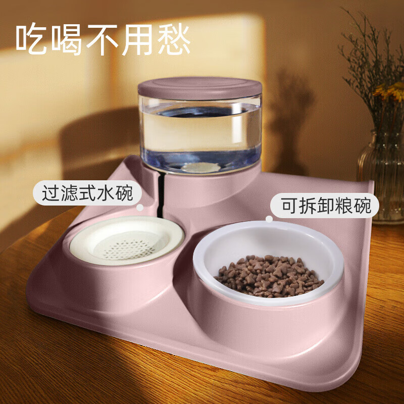 HOOPET猫碗猫咪自动喂食器饮水机喂粮投食猫食碗饭碗水盆宠物狗狗饮水器双碗防打翻盆吃饭喝水一体用品 喂食喂水过滤双碗-粉【陶瓷碗】