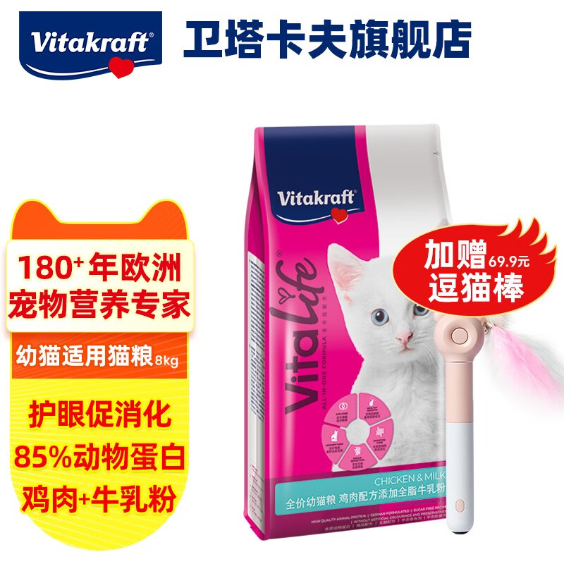 卫塔卡夫(Vitakraft)幼猫粮鸡肉添加全脂牛乳粉德国配方工艺全价主粮天然五谷猫咪食品 幼猫8KG鸡肉配方添加牛乳粉