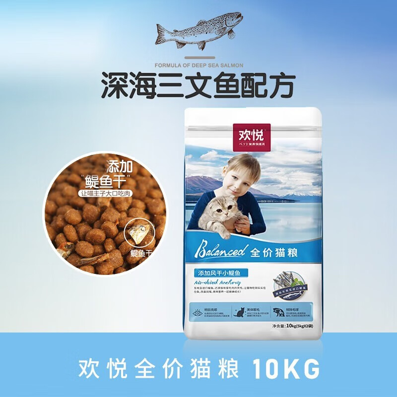 欢悦欢悦欢虎仔三文鱼猫粮幼猫成猫10kg英短猫通用全价营养20斤装