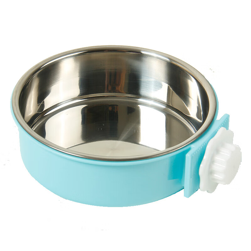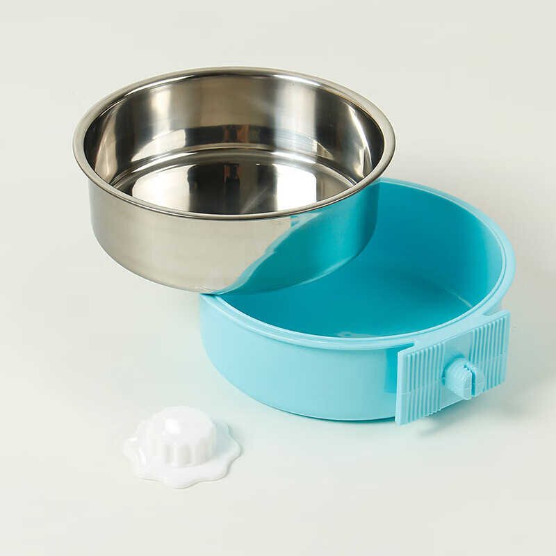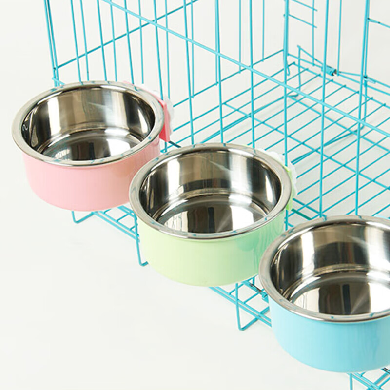不锈钢可悬挂式猫狗粮饭盆兔子食盆带碗架猫咪食盆宠物食具水具用品 蓝色 大号