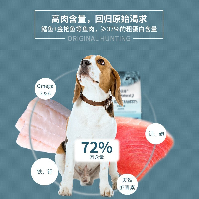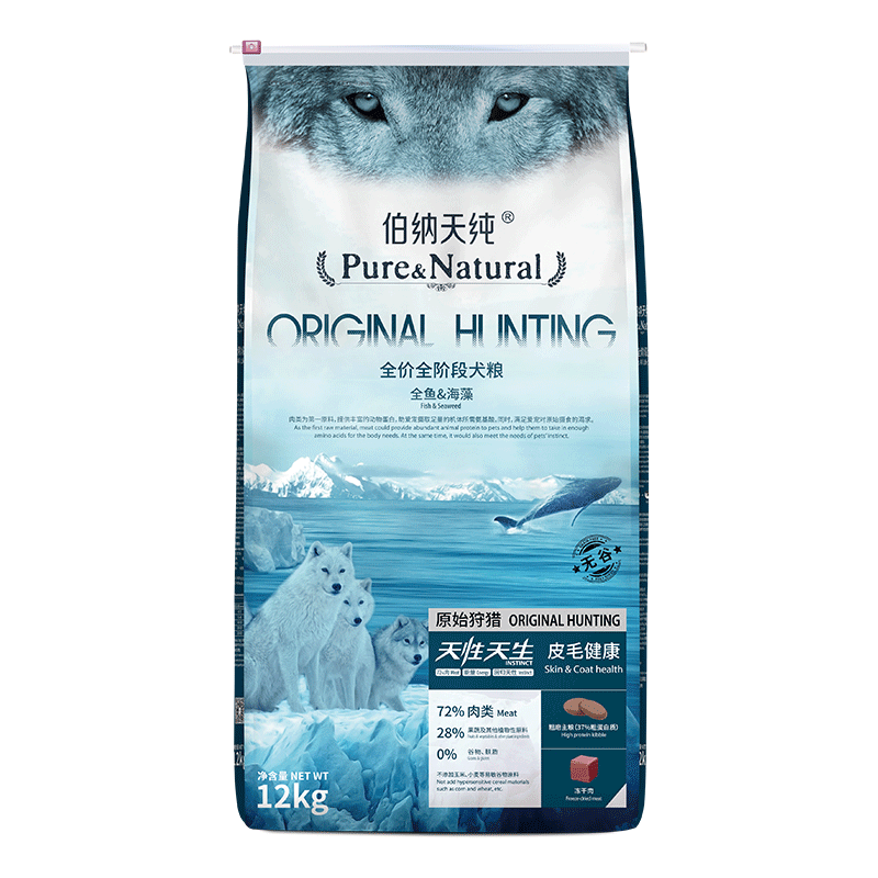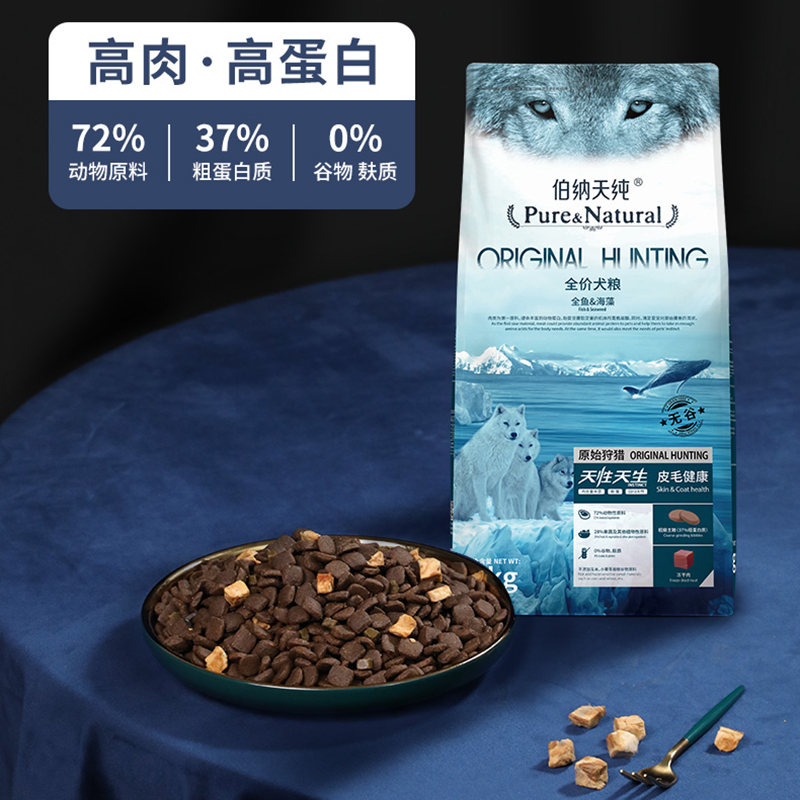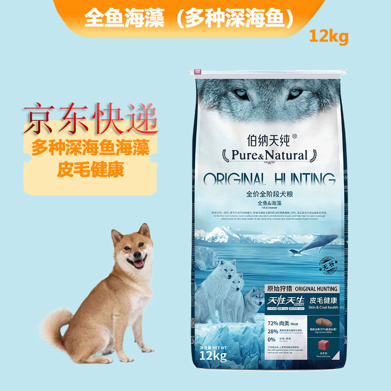 伯纳天纯狗粮全鱼海藻狗粮原始狩猎冻干肉金枪鱼鳕鱼鳀鱼高肉健康营养护肤美毛大包装12kg