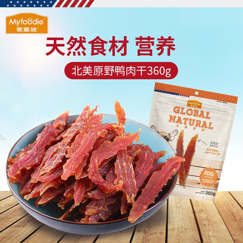 麦富迪(Myfoodie)狗狗零食北美原野系列磨牙解馋鸡鸭肉干比熊泰迪宠物训练奖励360g 鸭肉干360g