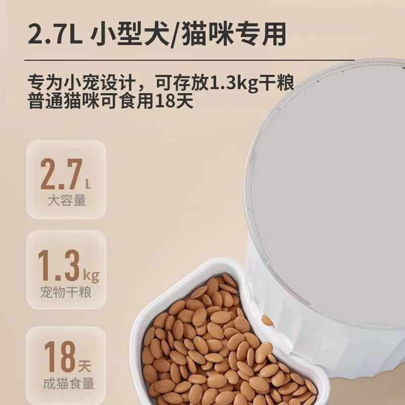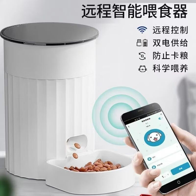 短云【精选推荐】 猫自动喂食器 猫咪智能喂食器宠物自动定时定量猫粮狗粮wifi远程投食机投粮机 白色 按键款