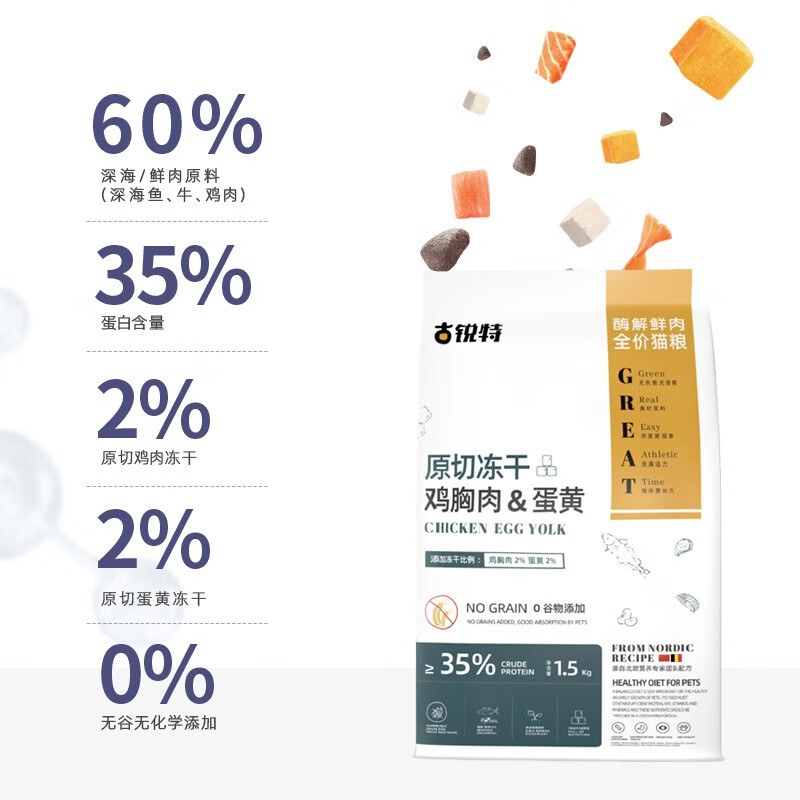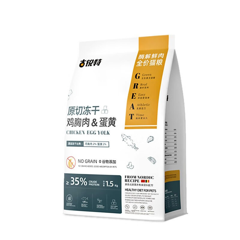 古锐特蛋黄鸡肉冻干猫粮双拼35%蛋白鲜肉无谷全价猫粮1.5kg幼猫成猫增肥 1袋(3斤)