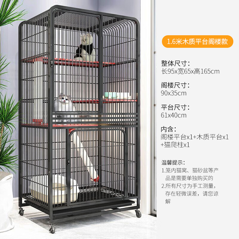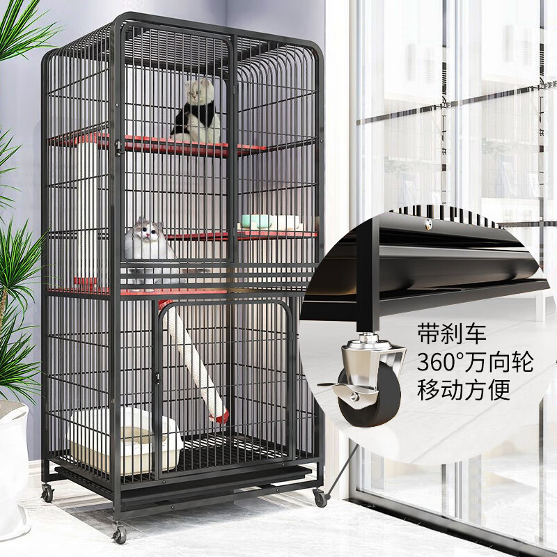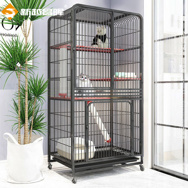 新越昌晖猫笼子猫别墅四层猫柜 宠物猫咪房子猫窝猫屋 幼猫通用猫舍95*65*165cm 黑色XY-ML07H