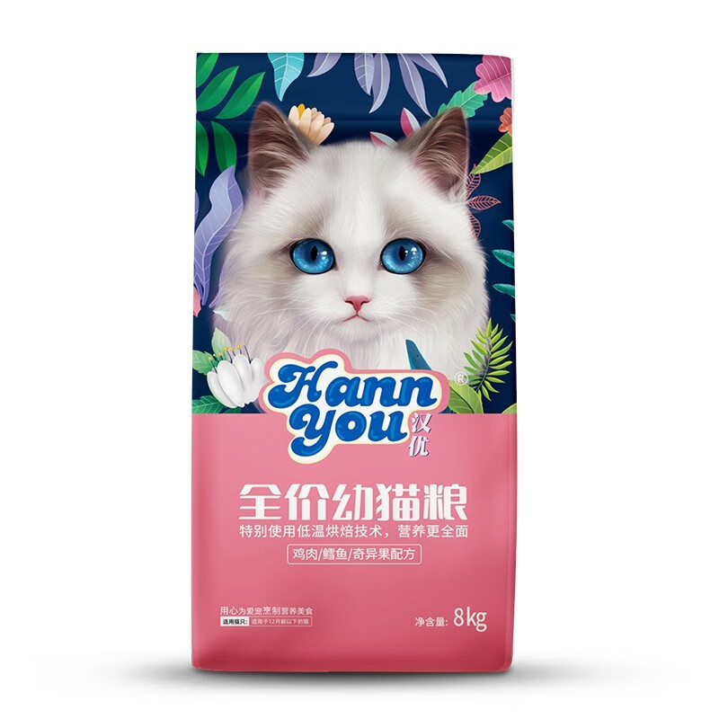 汉优低温烘培猫粮鲜肉布偶蓝猫橘猫加菲英短通用主增肥猫干粮 烘培幼猫8kg/袋