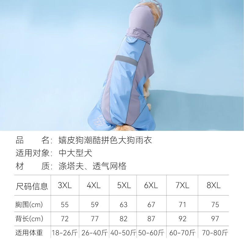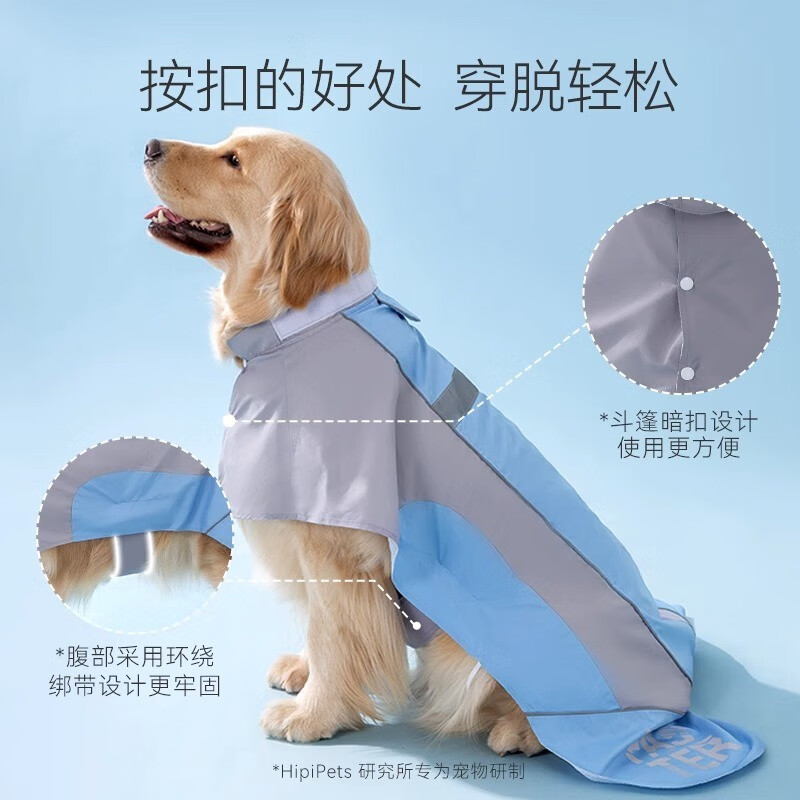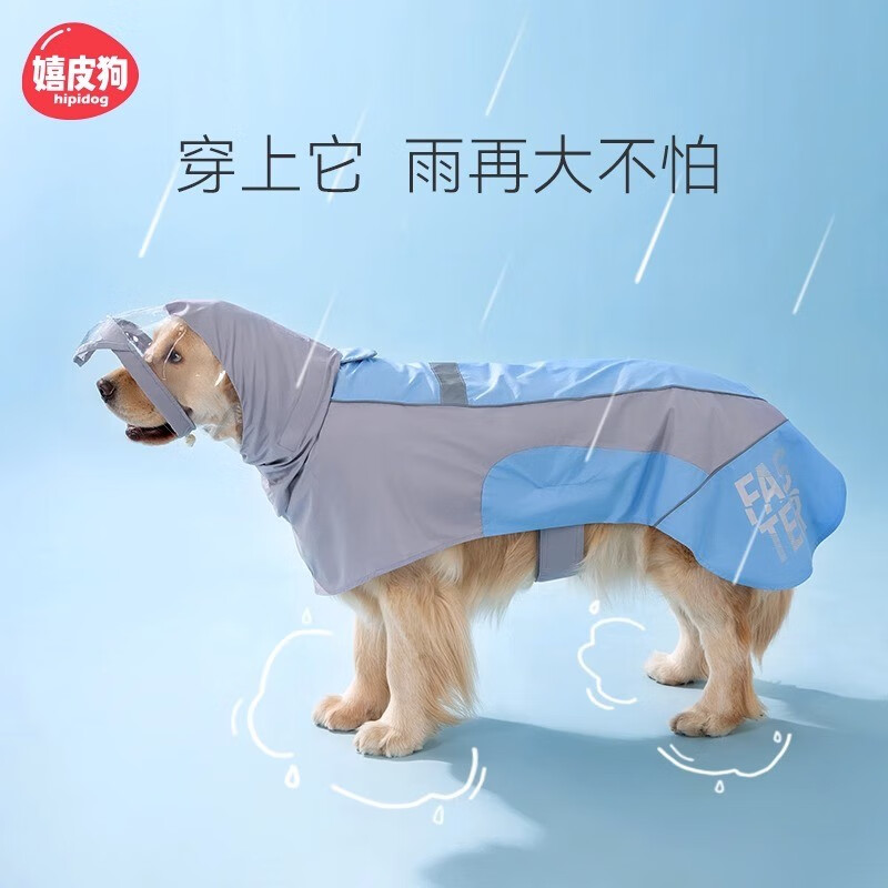 嬉皮狗(hipidog)宠物狗狗潮酷拼色大狗雨衣金毛边牧外出遛狗神器雨天专用雨披雨衣 蓝灰拼接 3XL(建议体重18-26斤)