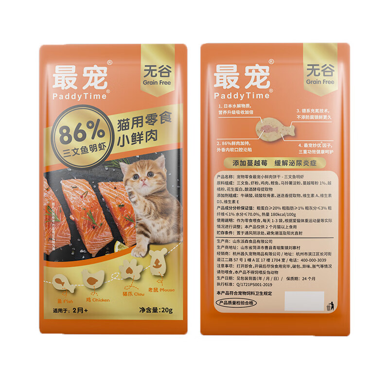 最宠(Paddy Time)猫零食小鲜肉200g三文鱼明虾味泌尿系统10袋 湿粮包小鱼肉饼干宠物成幼猫咪粮食品