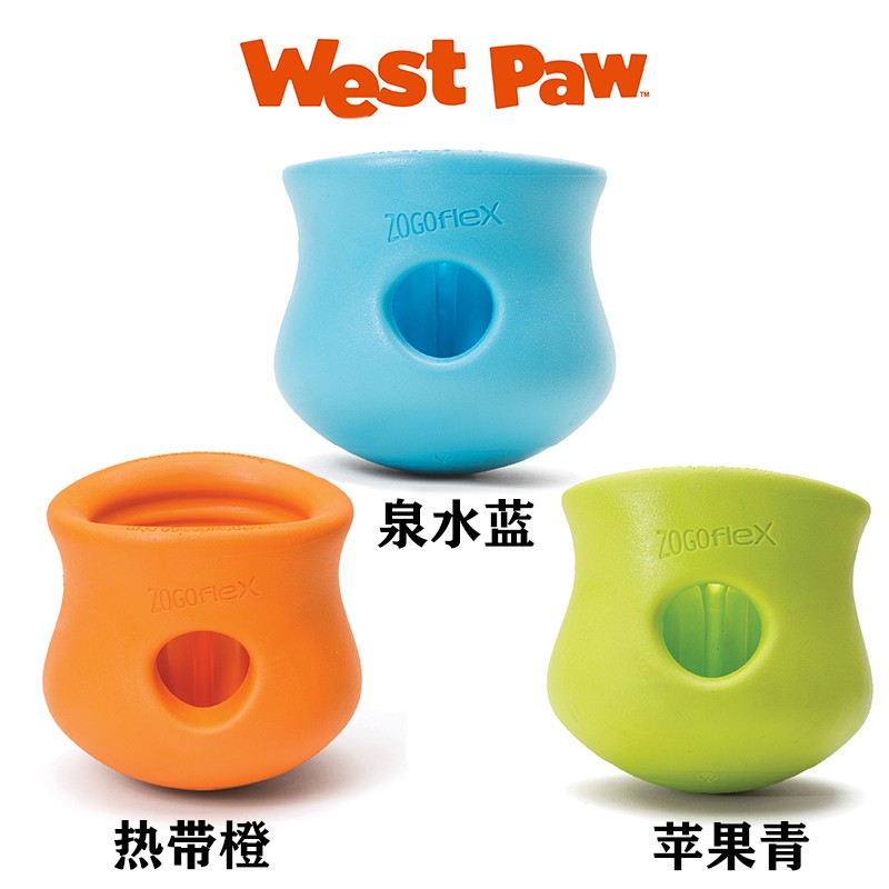美国西爪West Paw 狗狗磨牙耐咬漏食玩具Classic经典系列大中小型犬咬胶训练独处狗狗玩具 套乐多S码(8cm) 热带橙