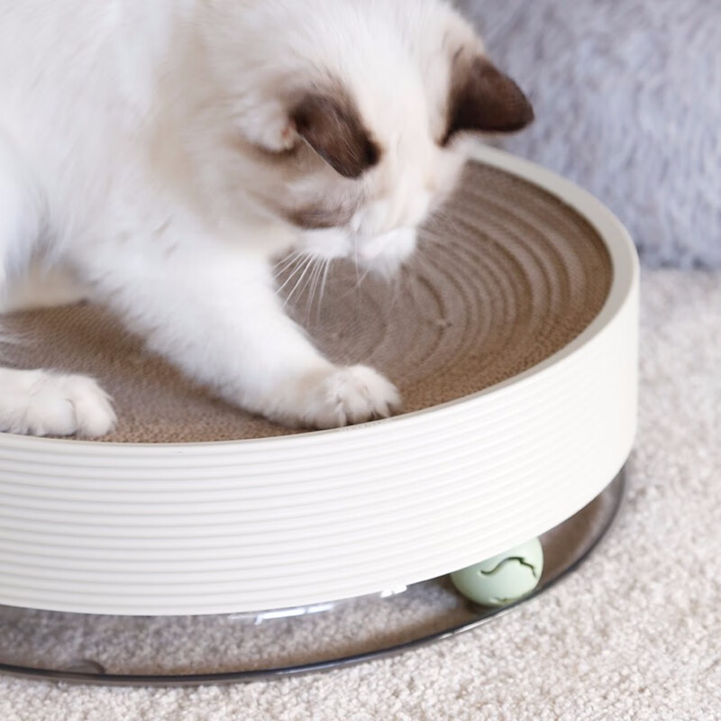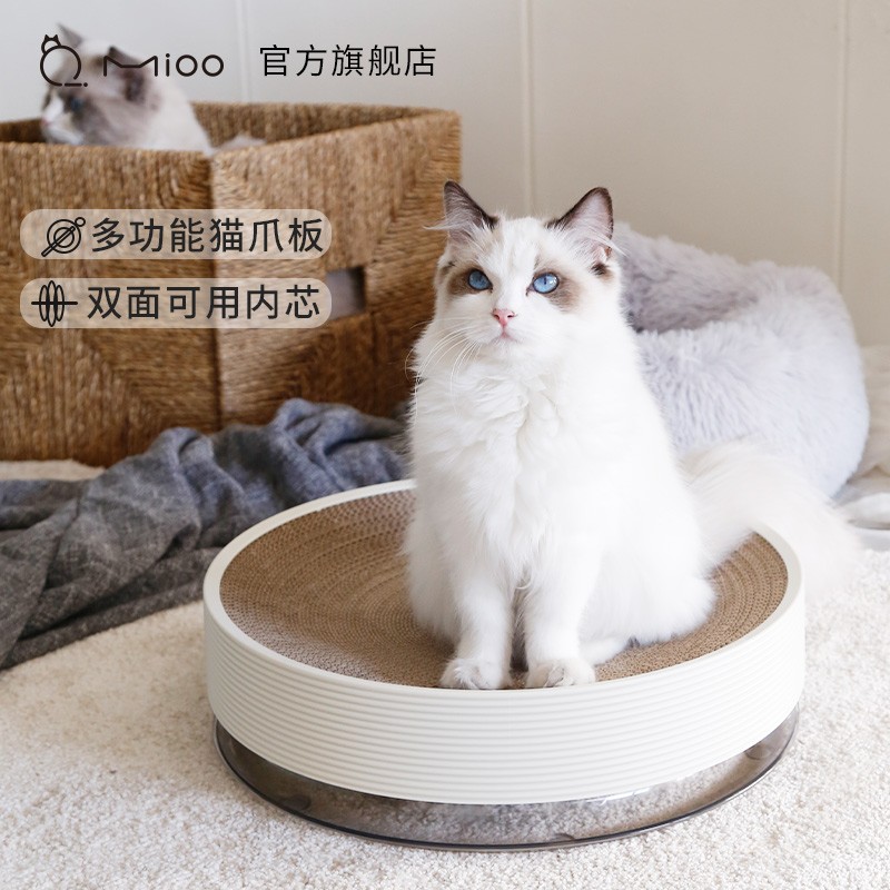 Mioo 猫抓板大号猫窝碗山谷碗形宠物猫玩具瓦楞纸猫爪板耐磨可替换内芯底部铃铛猫薄荷猫咪用品 雅致米白【40cm大直径 内芯可换】