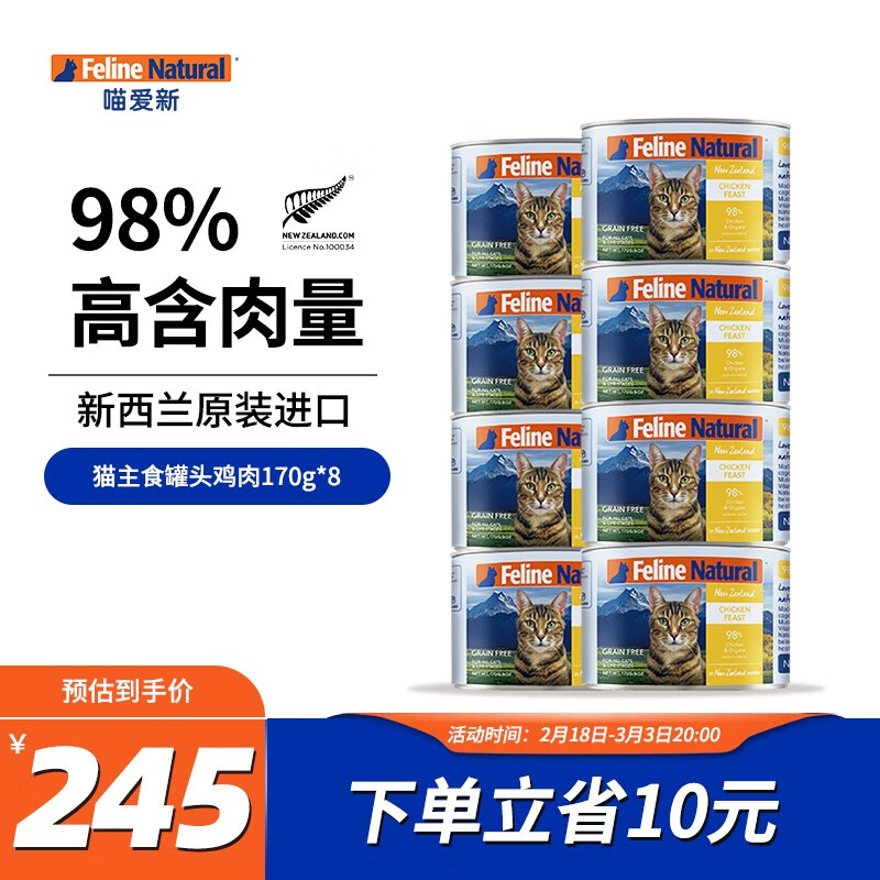 喵爱新(FELINE NATURAL)K9猫罐 新西兰原装进口成幼猫主食罐头 鸡肉170g*8