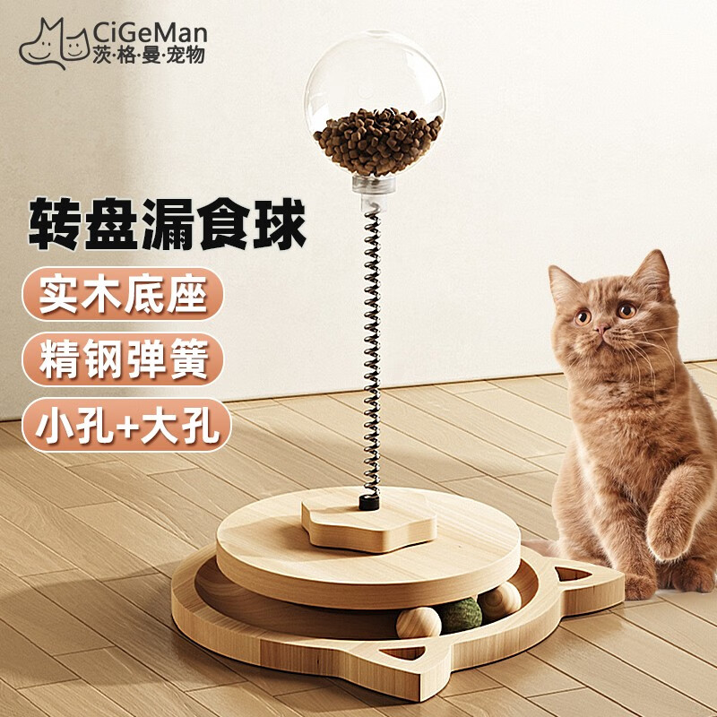 茨格曼 猫玩具自嗨逗猫玩具球实木转盘漏食球逗猫棒不倒翁解闷神器幼猫小猫猫成猫玩具猫咪用品 猫头款 (大孔 小孔)