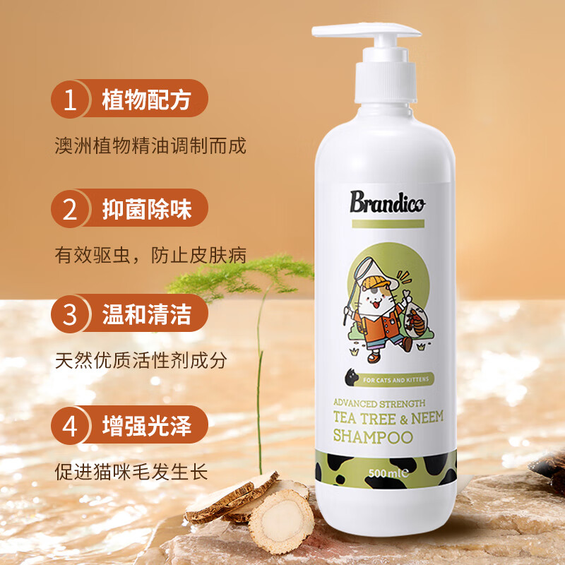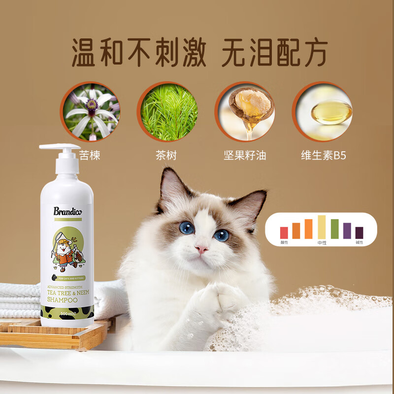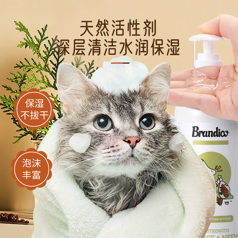 澳洲进口Brandico宠物猫咪沐浴露蓝猫布偶英短宠物生活用品幼猫专用止痒洗澡液除臭抑菌香波用品 宠物猫咪-苦楝香波