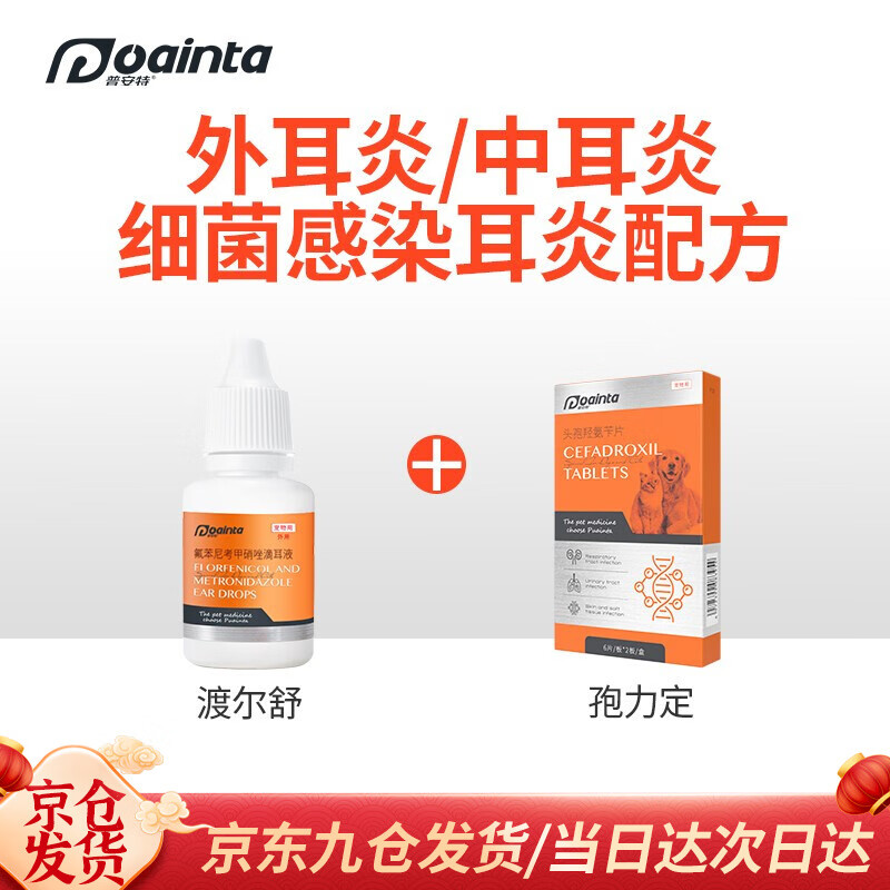 普安特宠物狗狗猫咪耳螨耳炎真菌滴耳药耳臭耳痒化脓红肿瘙痒洗耳液清洁耳水洁滴耳液渡尔舒 渡尔舒 头孢羟氨苄片