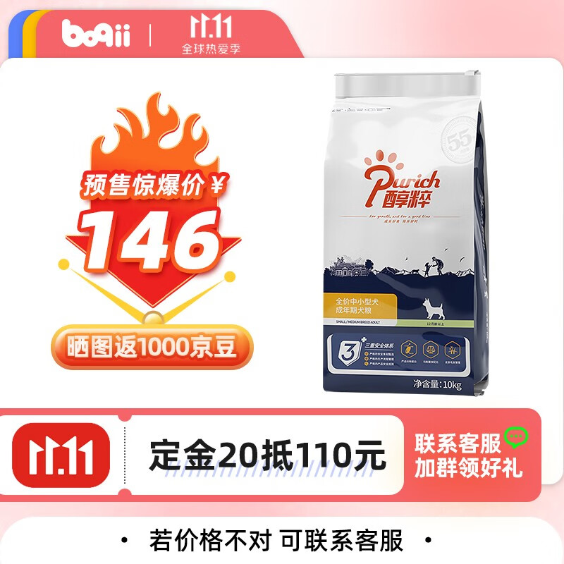 【预售丨客服有券】醇粹狗粮 中小型犬成犬全价狗粮10kg