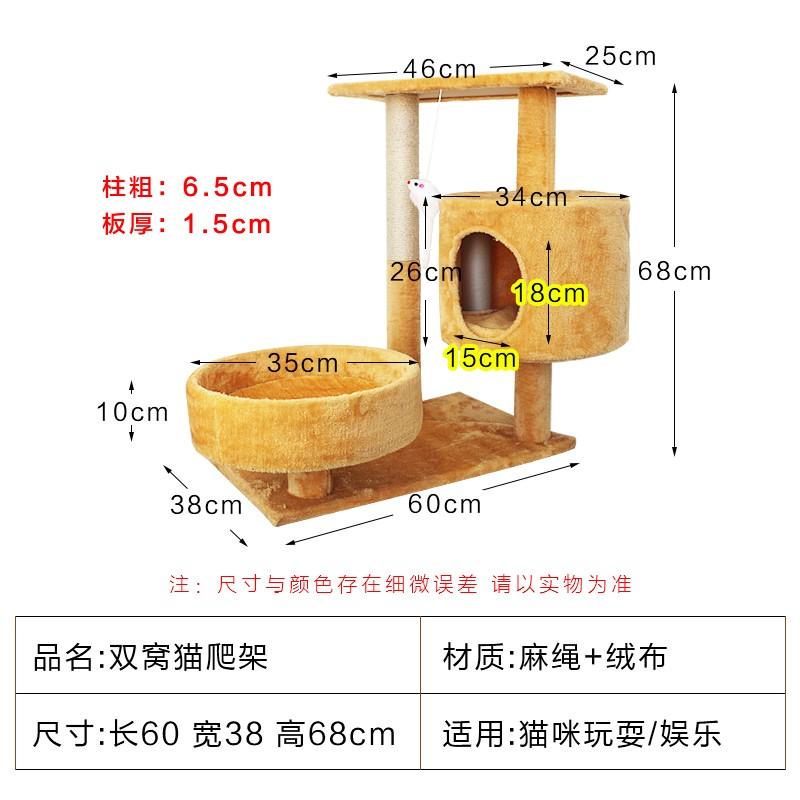 贝尼宠 猫玩具 逗猫棒猫薄荷激光笔不倒翁玩具于猫爬架猫咪玩具小猫玩具猫抓板 棕色双窝猫爬架68cm加宽底板60cm