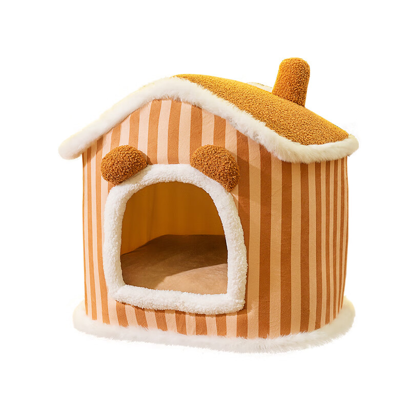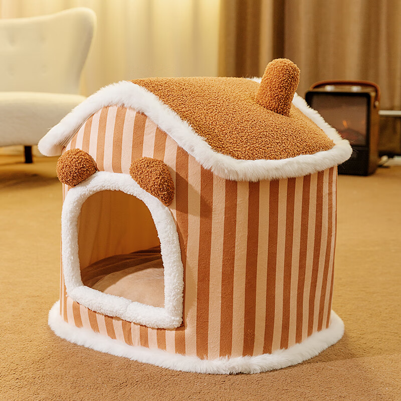 嬉皮狗(hipidog)半封闭式四季通用可拆洗猫窝网红猫屋猫咪床狗窝宠物冬天冬季保暖 棕色小熊窝 S:40*30*32cm(建议体重7斤内)