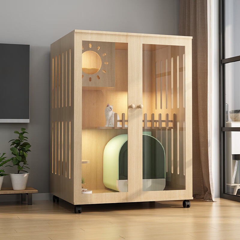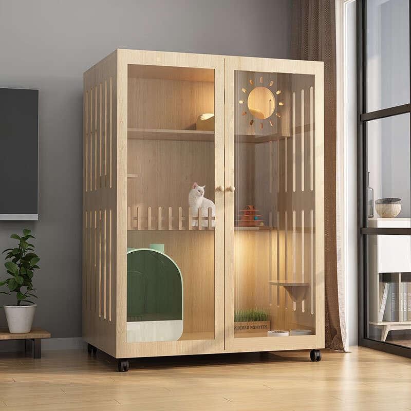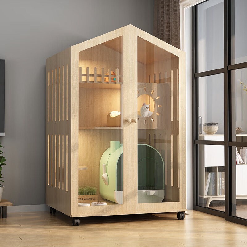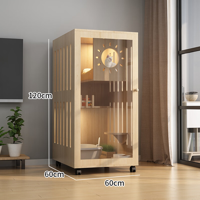 小米城堡猫别墅 木质猫笼双猫 木质猫柜猫笼子家用猫咪房子超大自由空间室 60*60*120【6个月内小猫】 【自己安装】