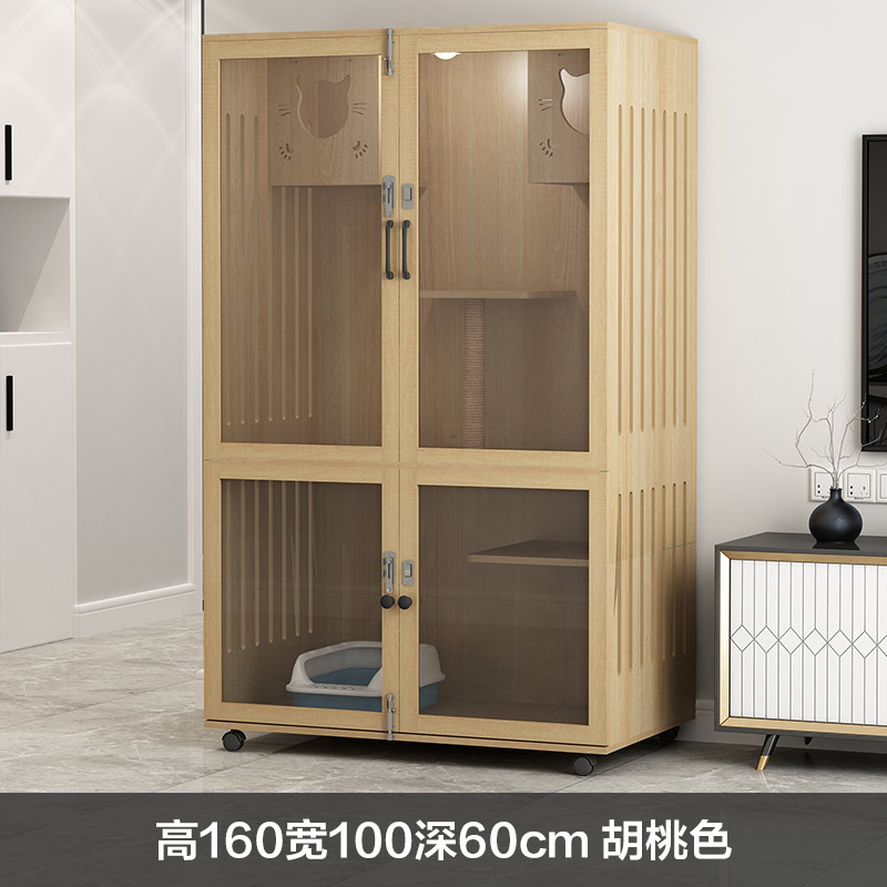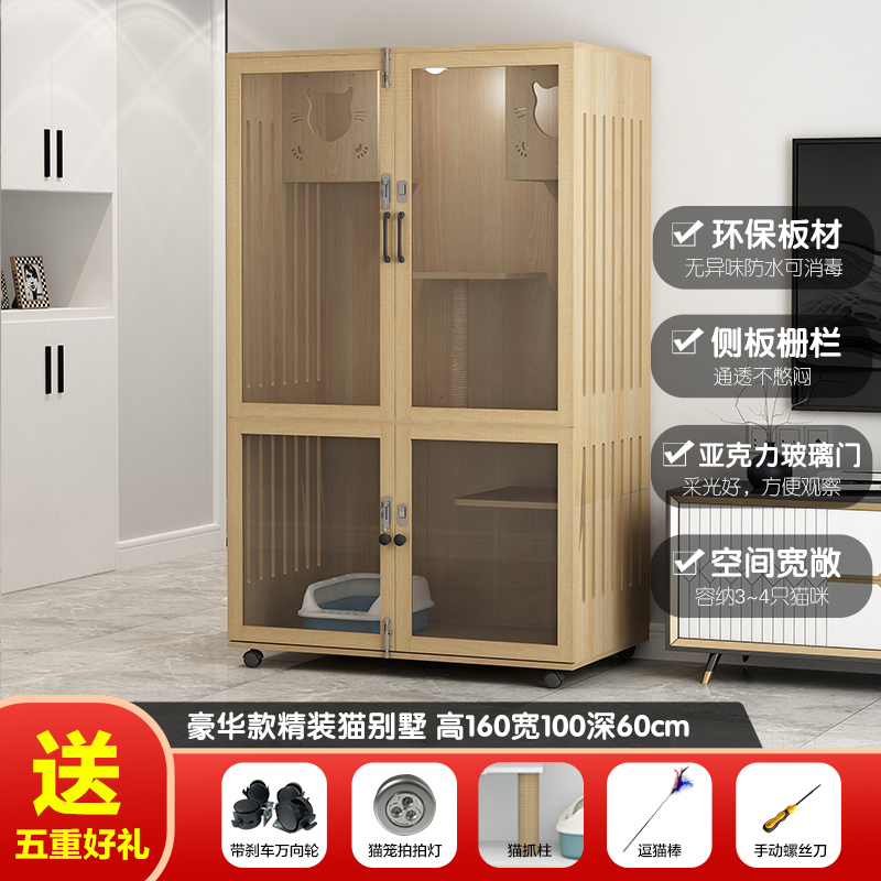 七夕旺猫笼子 实木生态猫别墅 猫笼木质 猫舍猫窝封闭式 防水可擦拭消毒 高160宽100深60原木色(三色可选)