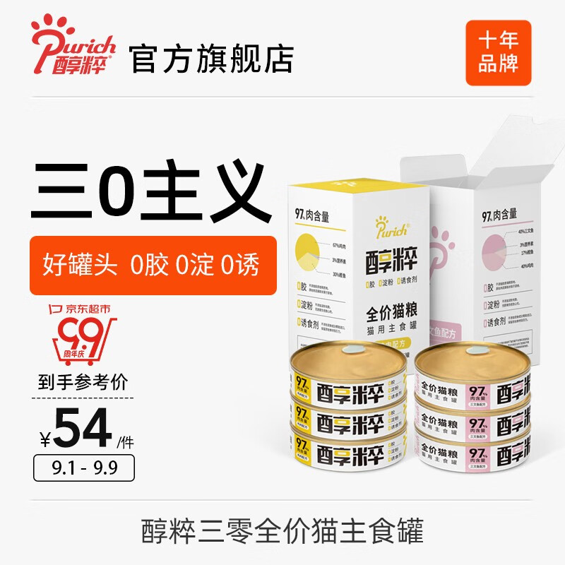 醇粹猫罐头湿粮 冻干生骨肉全阶猫咪主食罐头 鸡肉味*3 三文鱼味*3(100g*6) 3盒