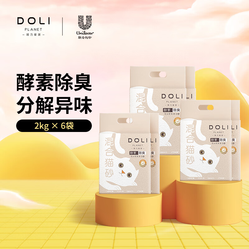 哆力星球 联合利华旗下酵素除臭混合猫砂豆腐猫砂猫沙无尘2公斤*6包